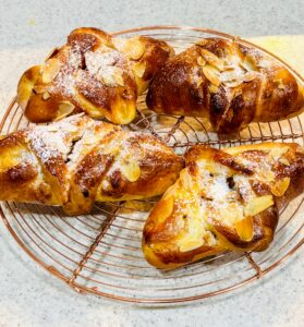 「シナモンアップルを優しく包んで」と「塩パン」にしました。サクサクの生地でシナモン香るリンゴを包むパンとしょっぱい塩パン。甘いのとしょっぱいのどちらがお好きですか?寒い日は紅茶と一緒に冬時間を過ごすのも良いですね!!